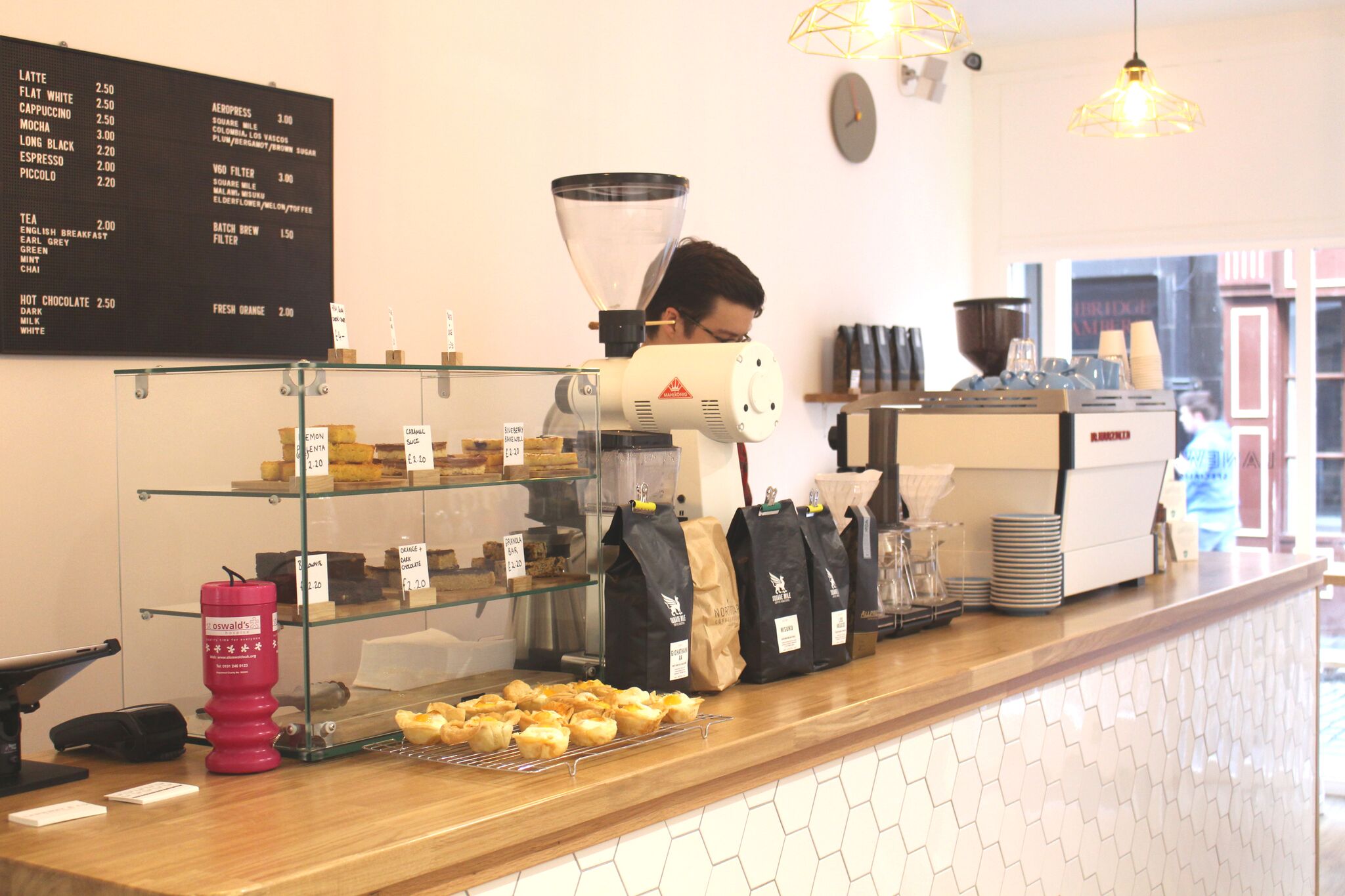 High bridge is a short street that links the Bigg Market to Grey Street and there’s a lot of footfall during both rush hours as busy business people travel to and from work. What does that mean? It’s a location crying out for an aces independent coffee shop and now, that’s exactly what it has. With it’s fresh, white and inviting interior, Laneway basks in it’s simplicity and lets the coffee do the talking.