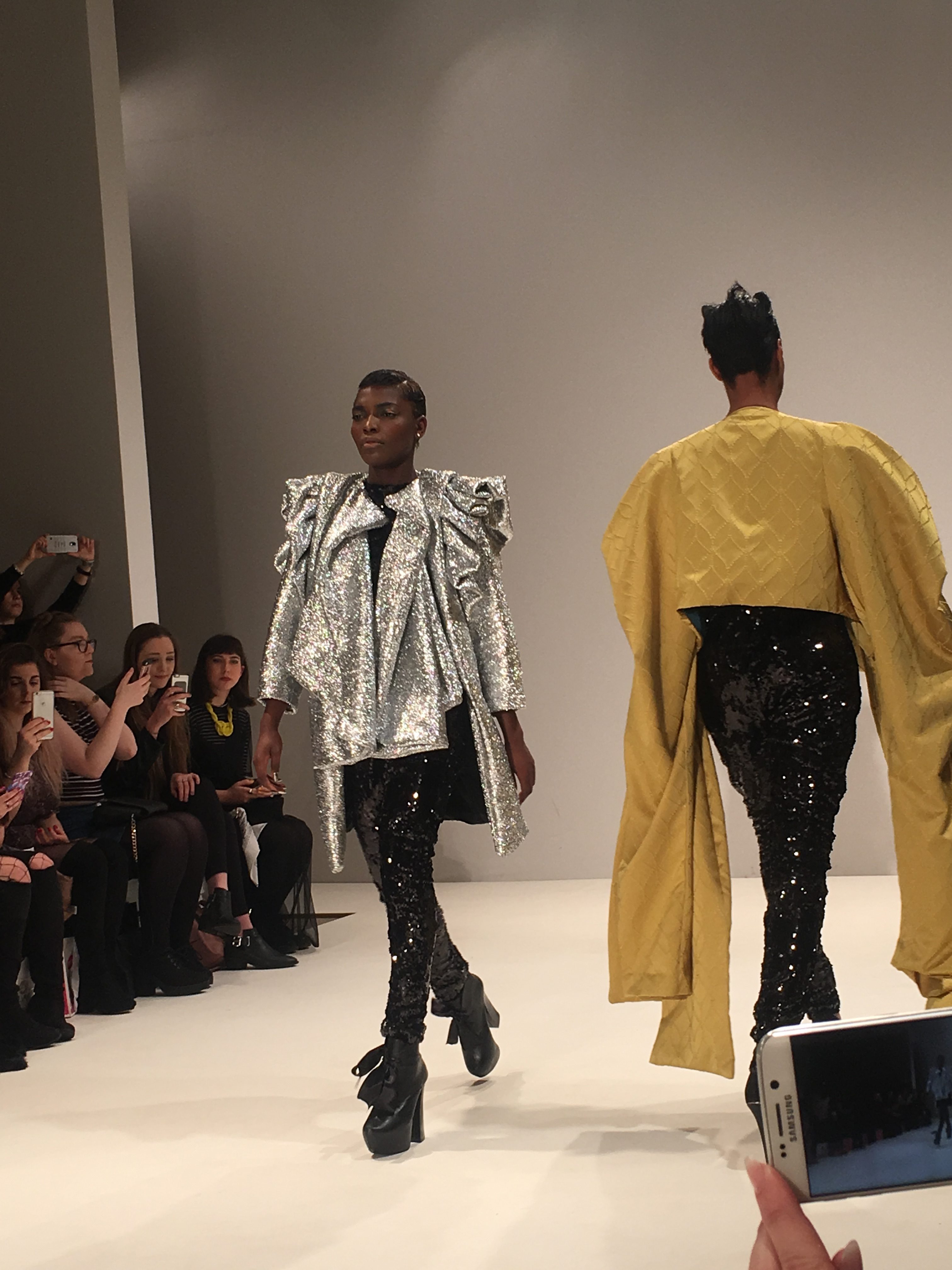 Personally, I adored the show, I was keen to see how Woollams would build on her 2016 national recognition and was pleasantly unsurprised. It’s great to see that she’s stuck to the principles that made her stand out from the crowd in the first place, staying firmly within her talent niche there’s a definite Hellavagirl aesthetic developing. Creating unapologetic proportions and dramatic shapes that scream “Don’t fuck with me” – a bold trouser with added width at the hip, or a voluminous jacket with looping shoulders, the knack for creating these exaggerated silhouettes has become Woollams’ signature and it’s one I hope she’ll keep as she’s edging the pack.