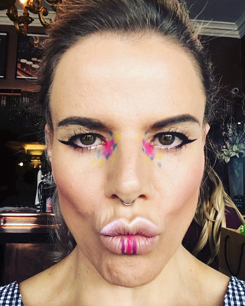 Styling on the shoot was a real homage to the 80’s with huuuuuuuge hair and super colourful paintbox style makeup, think Elizabeth Shue in Adventures in Babysitting crossed with Young Jenna in 13 Going on 30, and you’re on the right track. We even worked in some experimental lip stripes to to give the first part of the shoot a modern twist.