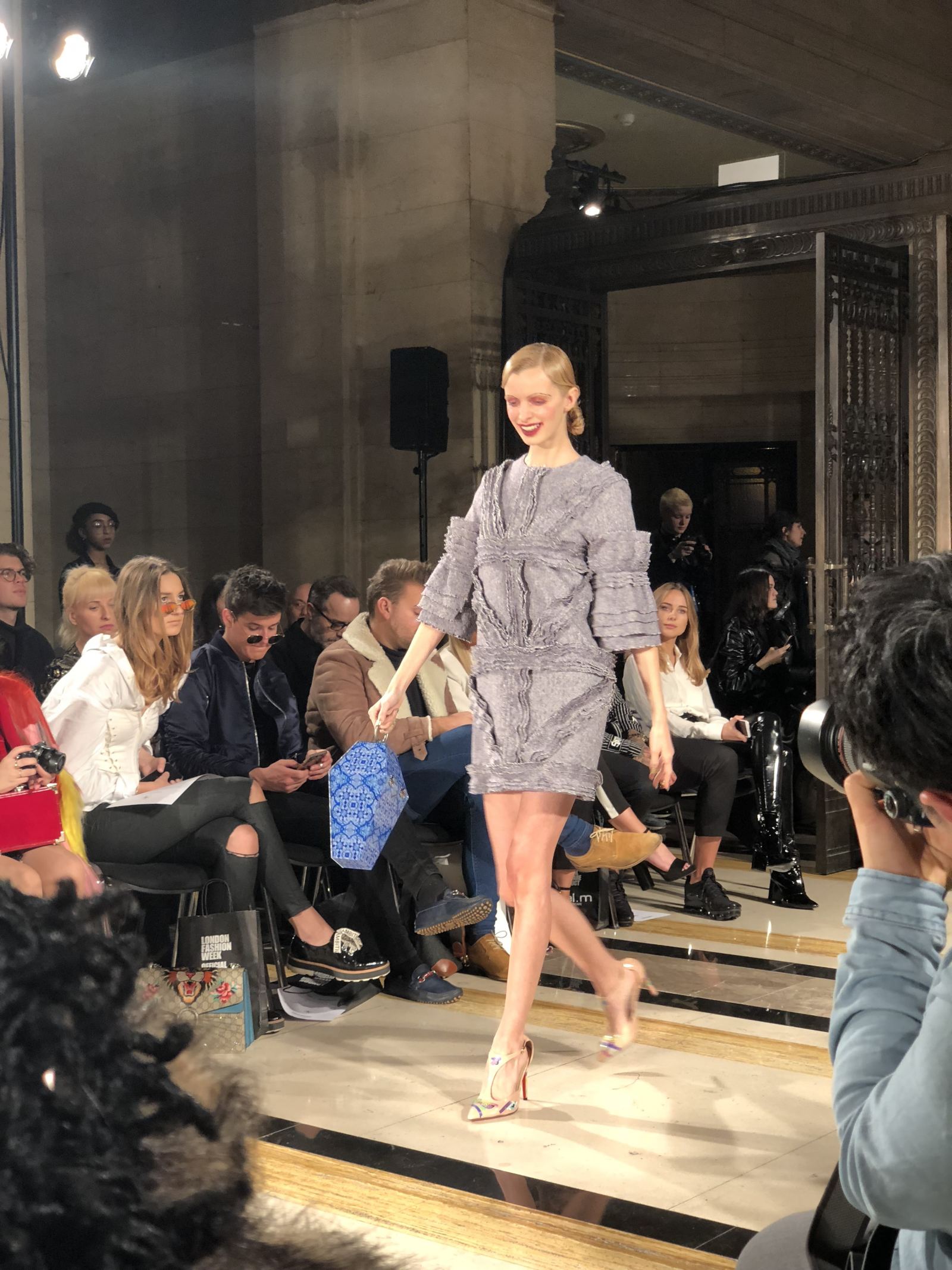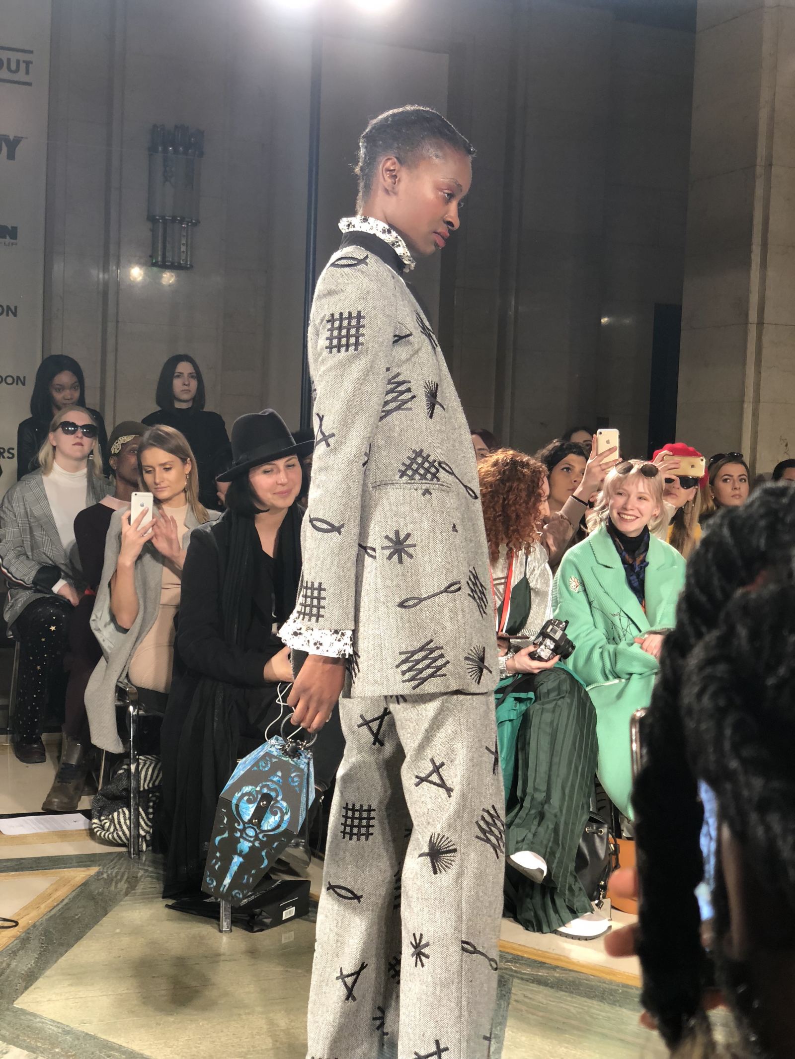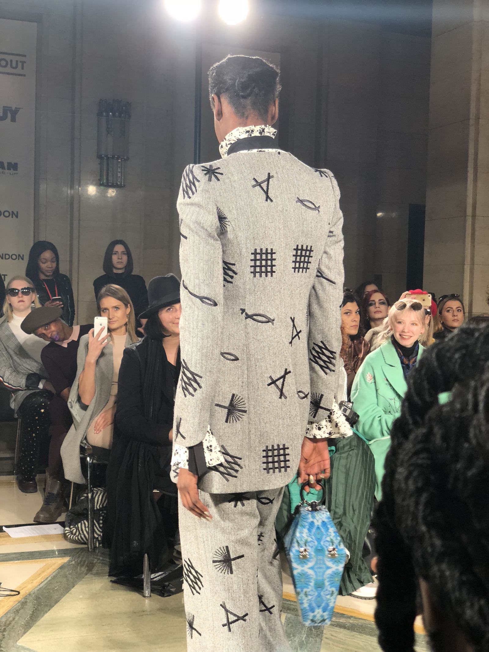Inversely, the Mad King is portrayed through the gothic arched lines in wearable suits and hard reliefs on coats. The primary colour for the Mad King is dark purple, while grey is used to describe the Mad King’s power. Finally, glen check patterns and wide sleeves create the juxtaposition of fabrics and colours to express intertextuality and cohesive characteristics of Siren and the Mad King. These pieces are highlighted with romantic silhouettes on tail edges, scribble prints and splashes of gold which reflect the sense of sadness brought about by the death of the Mad King, perhaps the reason for the models appearing so tortured. I loved every minute of it and left feeling like this was probably going to be the most memorable show of the season. I wasn’t wrong.