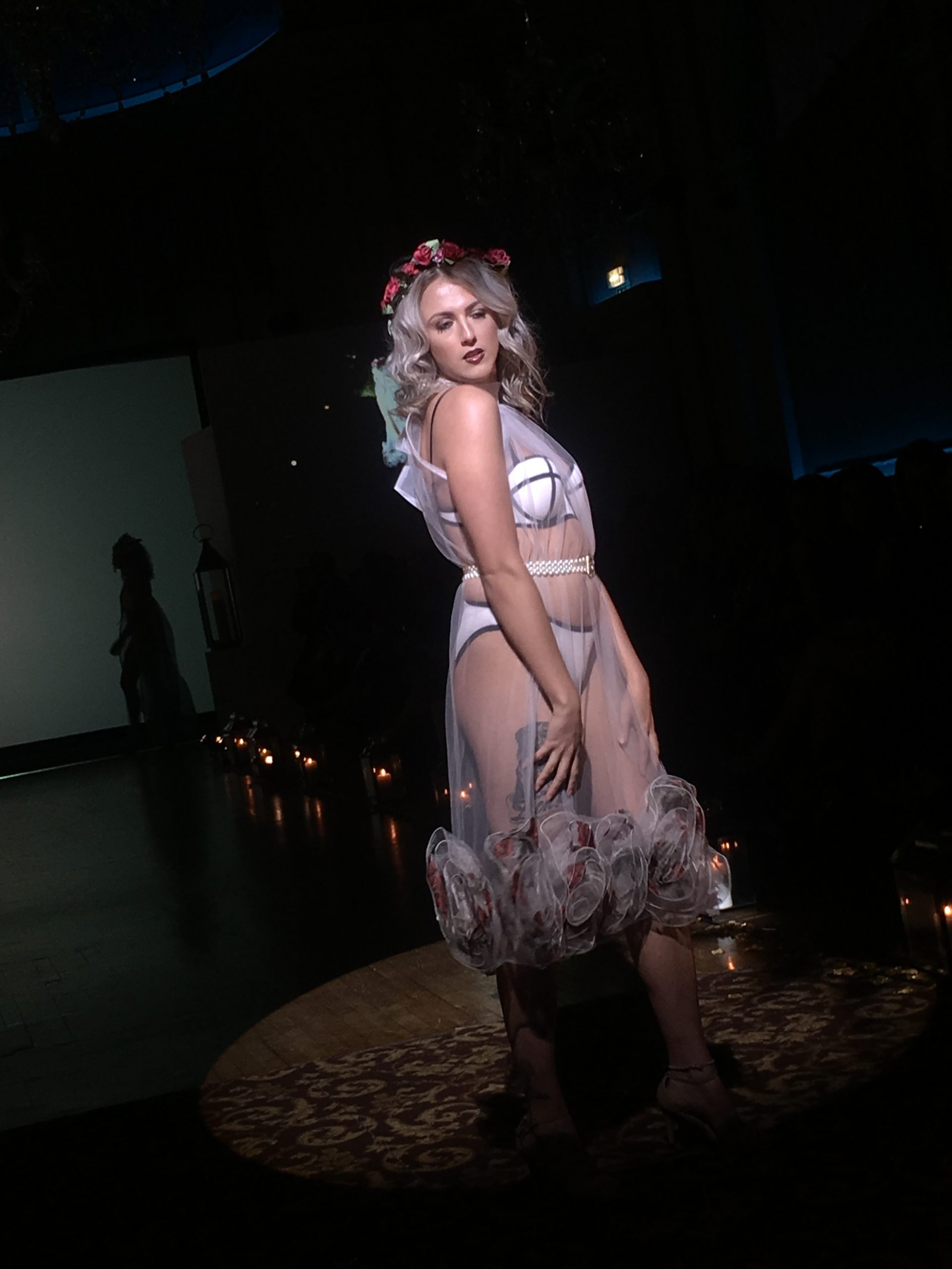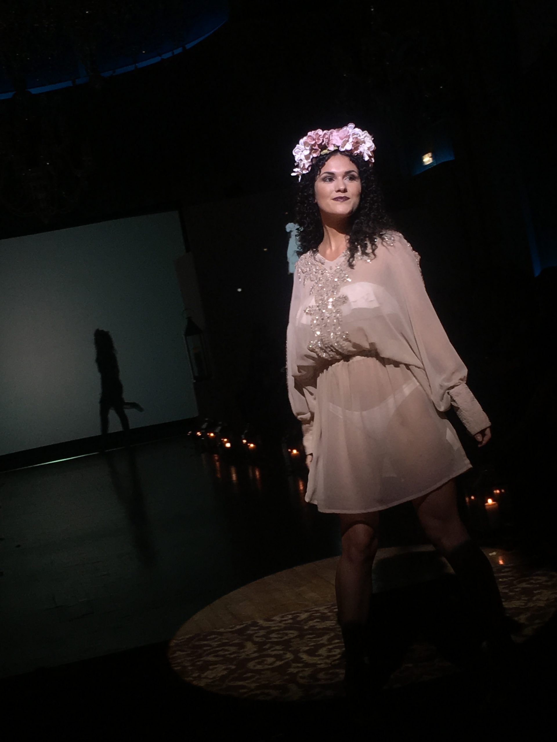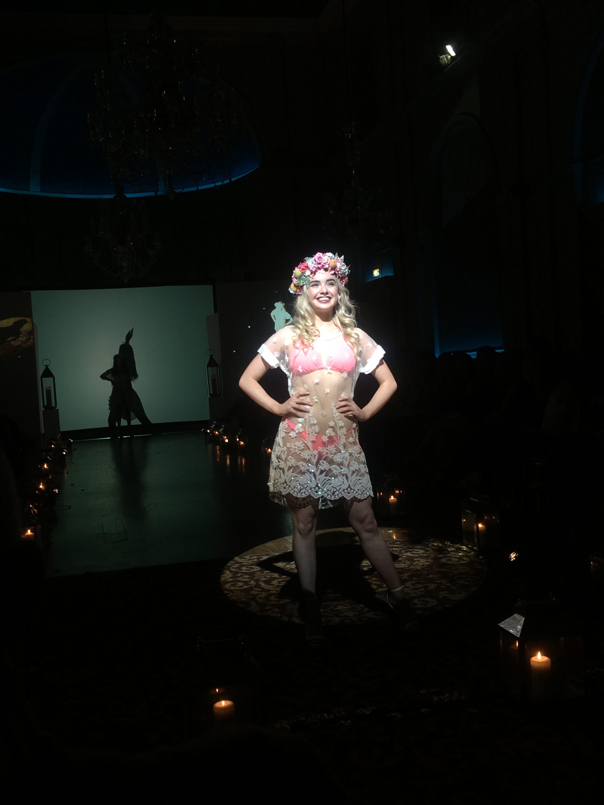The show, called The Moonlight Season, opened with Nisha’s own Cruise collection of bespoke kaftans and resort wear. Models walked the candlelit runway wearing striking flower crowns made by Kathryn Russell. Miss Junior Teen Great Britain, Harriotte Lane opened the show and told me afterwards that there were just days to go before she handed the title over to her successor. I took my seat with my photographer pal Hannah Todd, to take in the North East’s premier runway show….