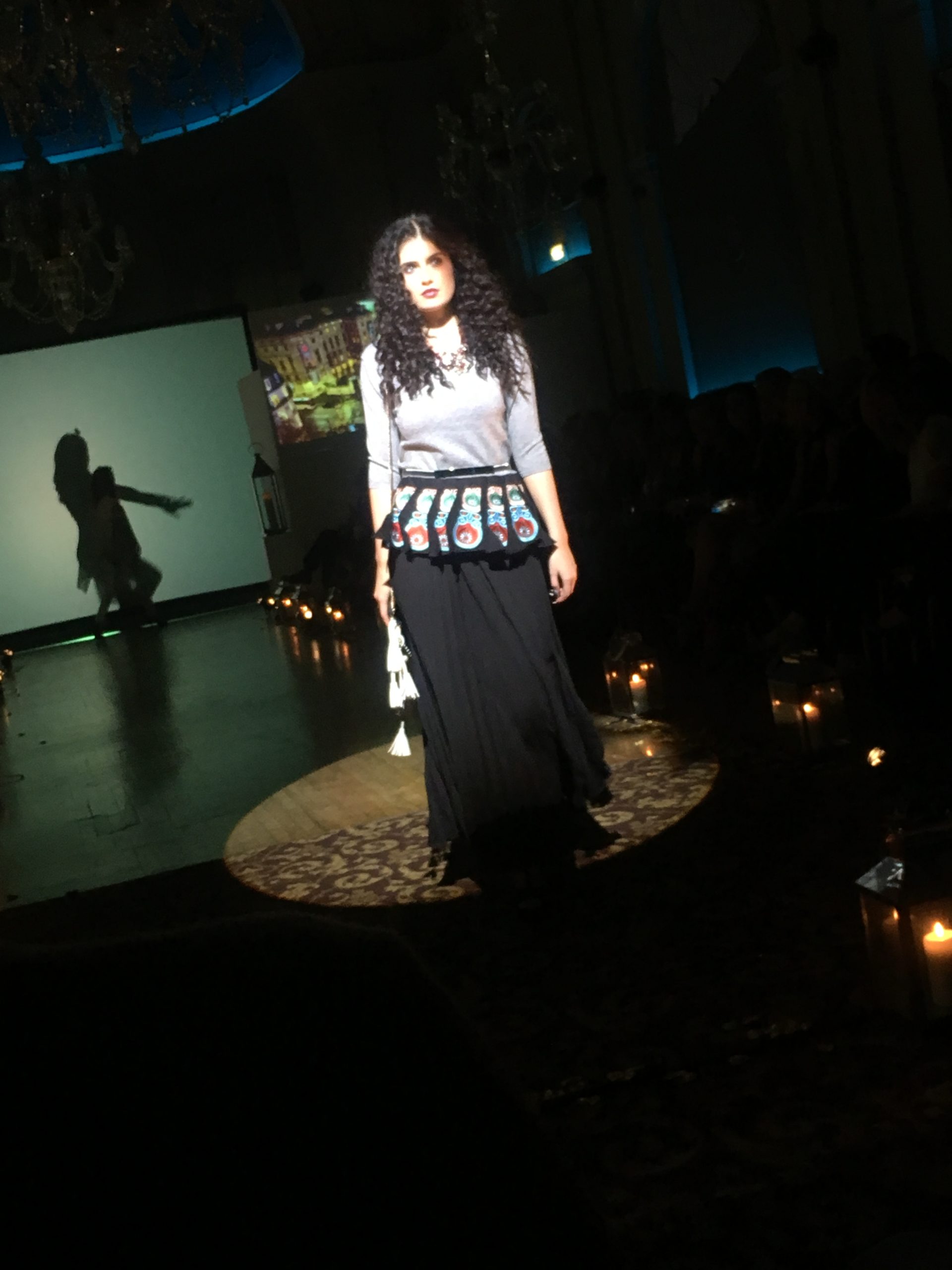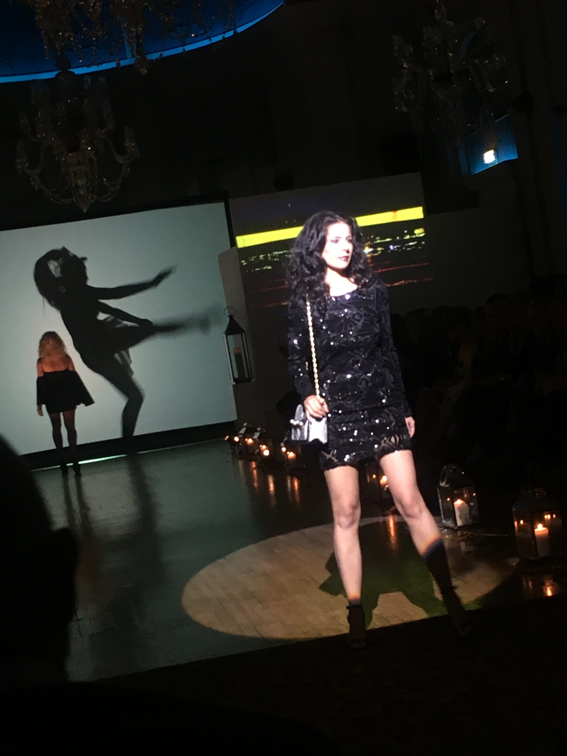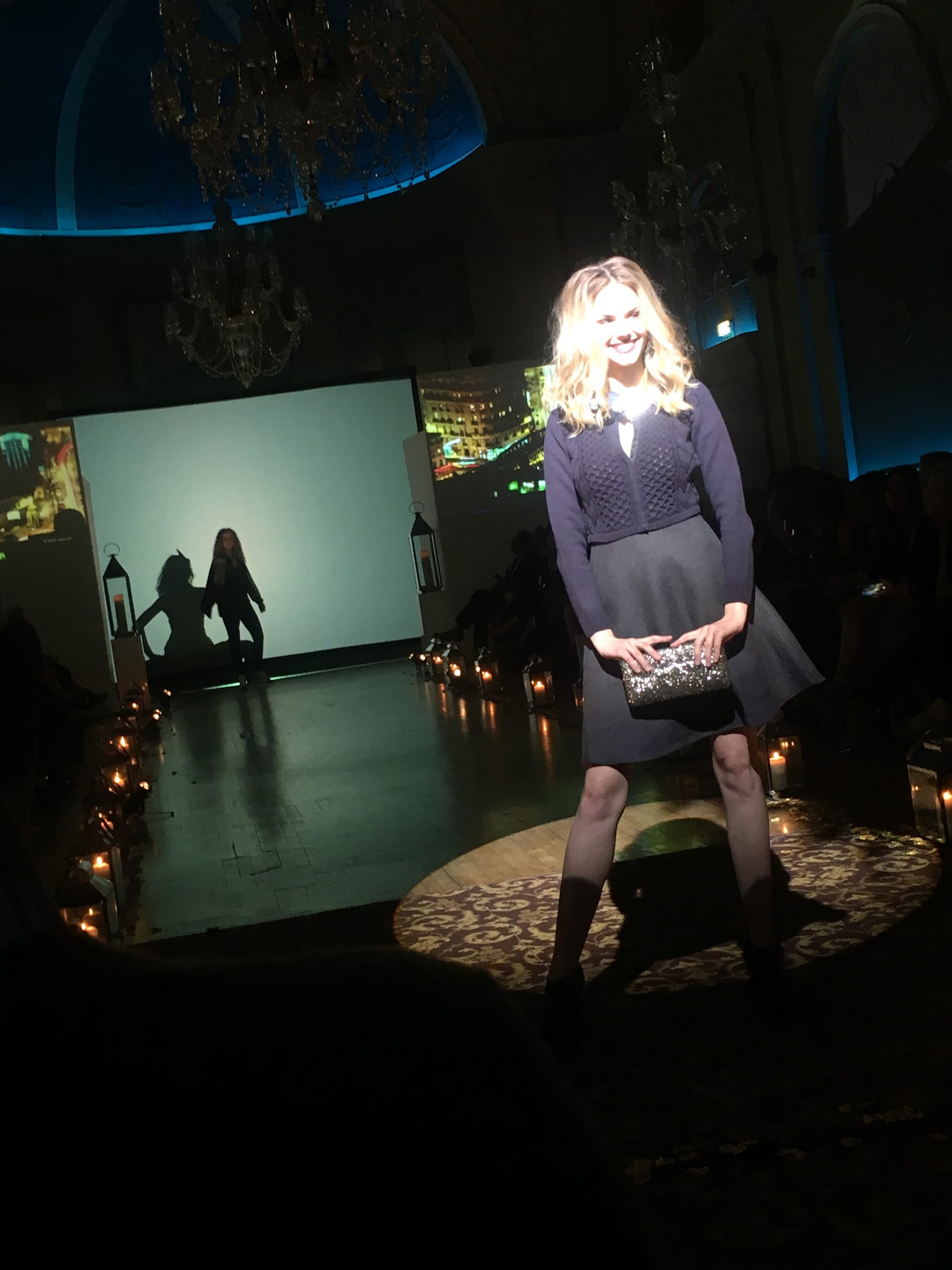 Our outfits were styled in the way we’d wear them ourselves so that the audience could see the versatility and personality in each piece. I wore my long sleeved sequinned top with a full skirt from Coast and a black velvet cape – very gothic princess. The bespoke luxe runway show also featured PR gurus Claire Barber and Sarah Hall and Rita Gray, a lady who’s become a friend of mine after Nisha introduced us a few years back (she calls me Carrie Bradshaw ❤️) and it added a new dimension to the show which showgoers agreed afterwards, allowed the audience to see how Nisha’s creations might be worn in ‘real life’.