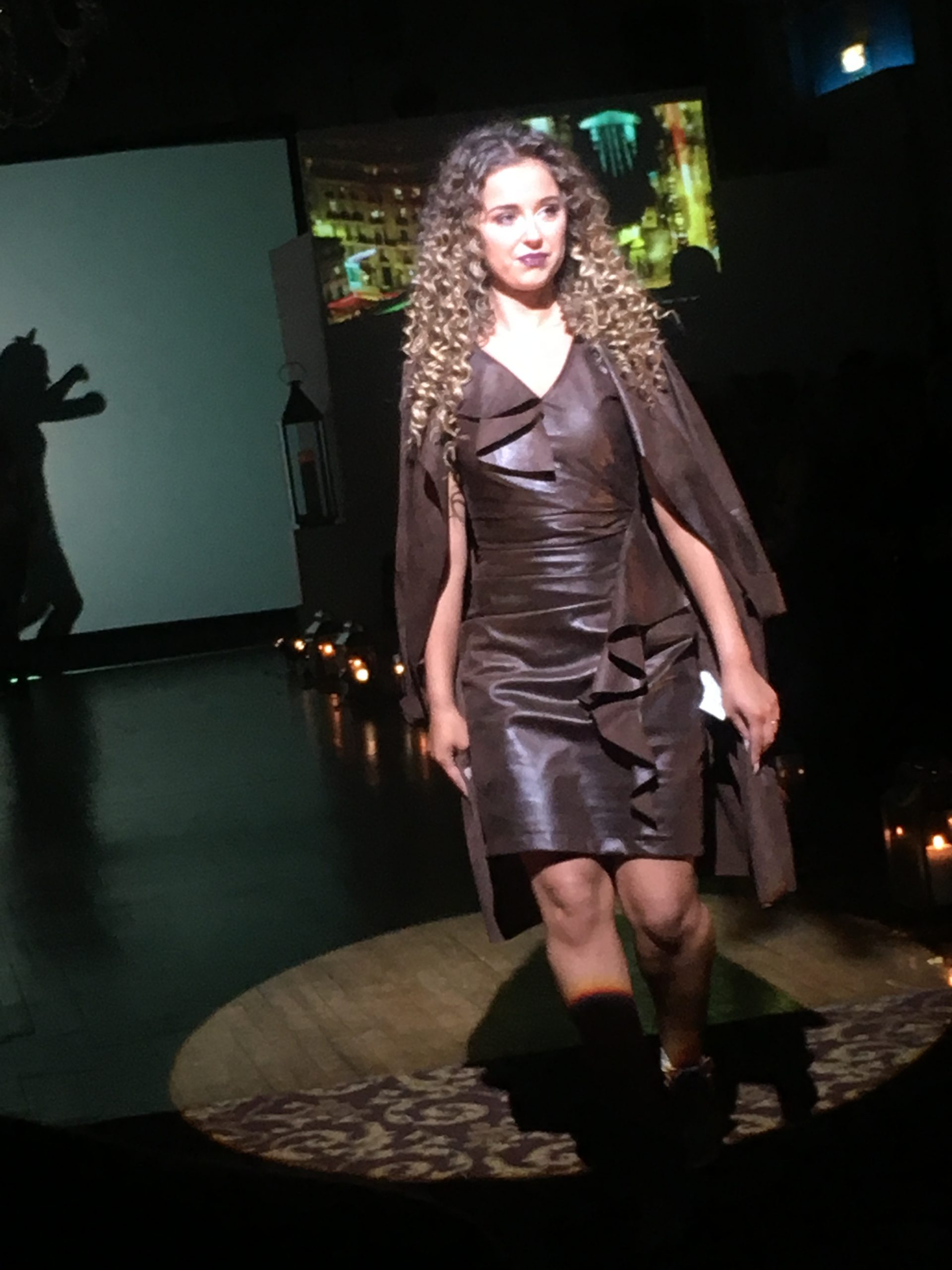 Nisha’s high end signature line, Love Niche was a collection of high octane occasion wear for urban warrior women. Guaranteed to create drama and turn heads, the collection garnered applause and a collective ‘ooooooooh’ from the sell out crowd. The stand out piece? A floor length dress coat with a nipped in waist and flared skirt worn by Miss Durham GB, Taylor Hamilton which opened and flared as she strutted the runway. TDF ?