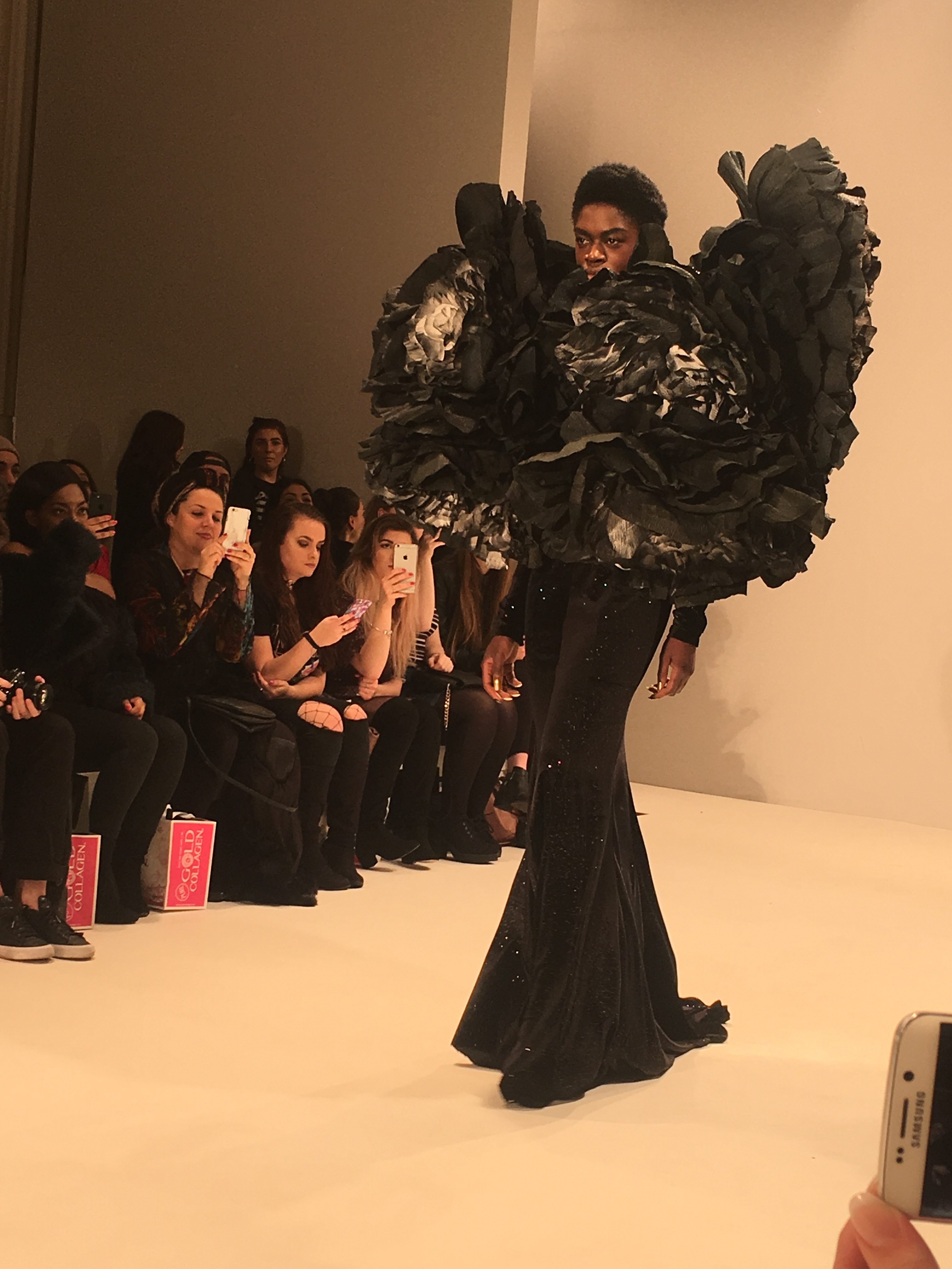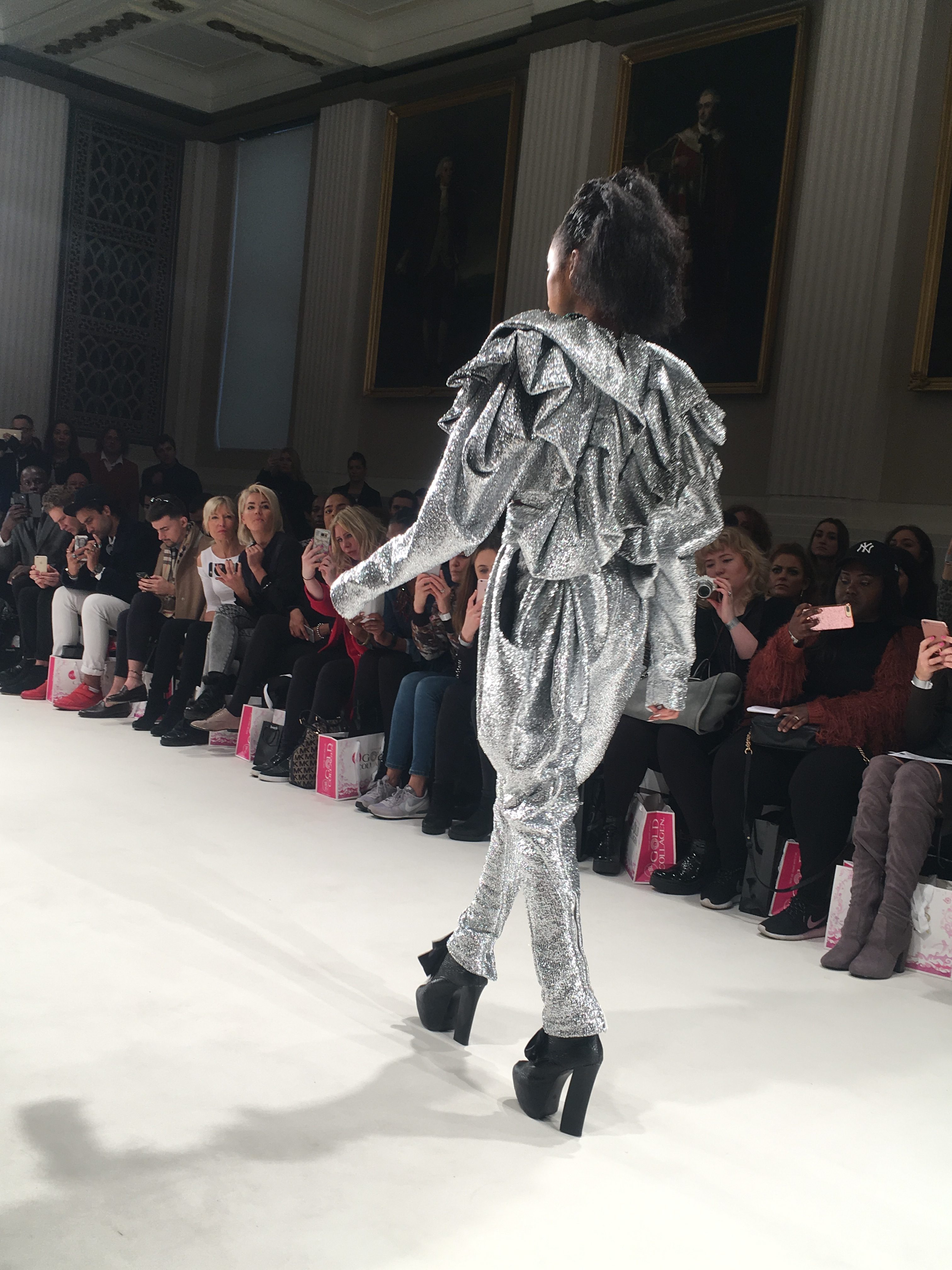 Fresh off the back of her 2016 Britain’s Top Designer win, Helen Woollams has created what’s surely her best visual spectacle yet for Hellavagirl’s FW17 showcase at Fashion Scout. I headed out to the Freemason’s Hall in a leather A-line skirt (to protect me from the elements) to share this awesome collection with you. I got to go backstage prior to the show too but that’s a whole other story…..