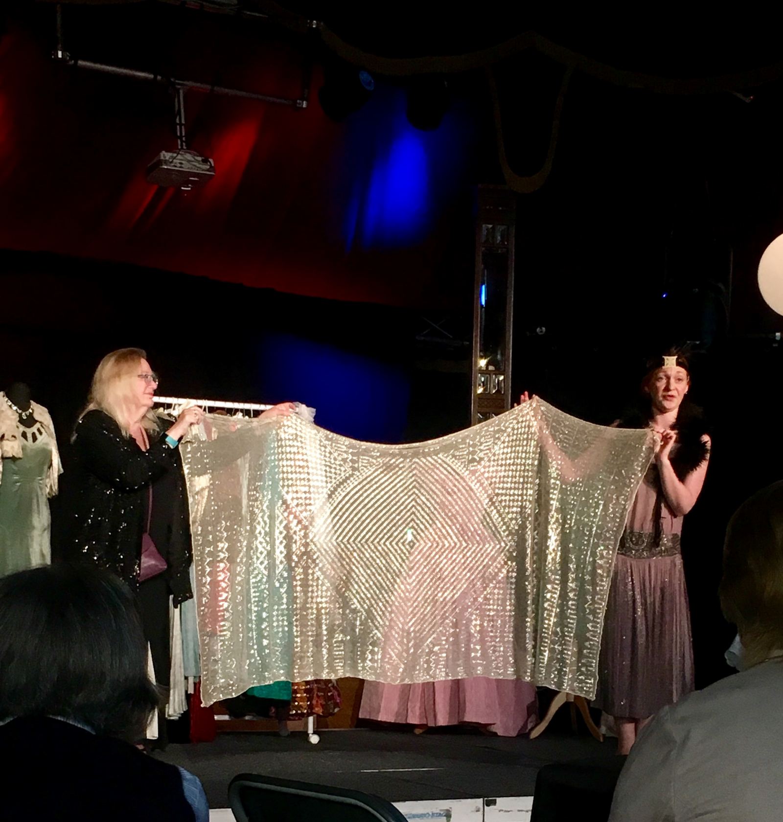 Costume Historian and Dressmaker Meridith Towne took to the stage in a 1920’s style dressing gown with her hair pinned in low rolls and from the moment she first spoke I was riveted. Speaking eloquently and confidently about fashion through the decades in a way that demonstrated not only the fashion that you would typically see, but also the circumstances and social and financial climates.