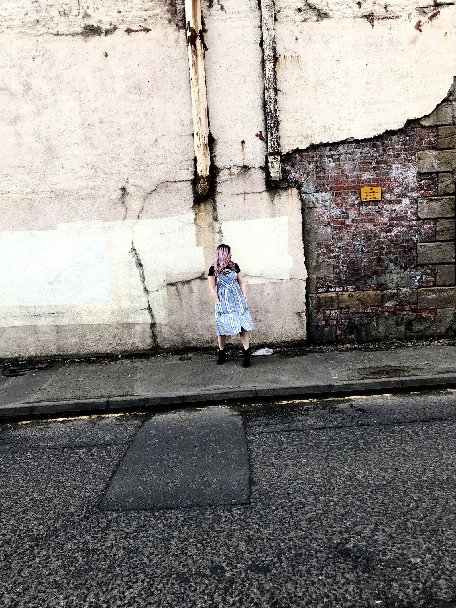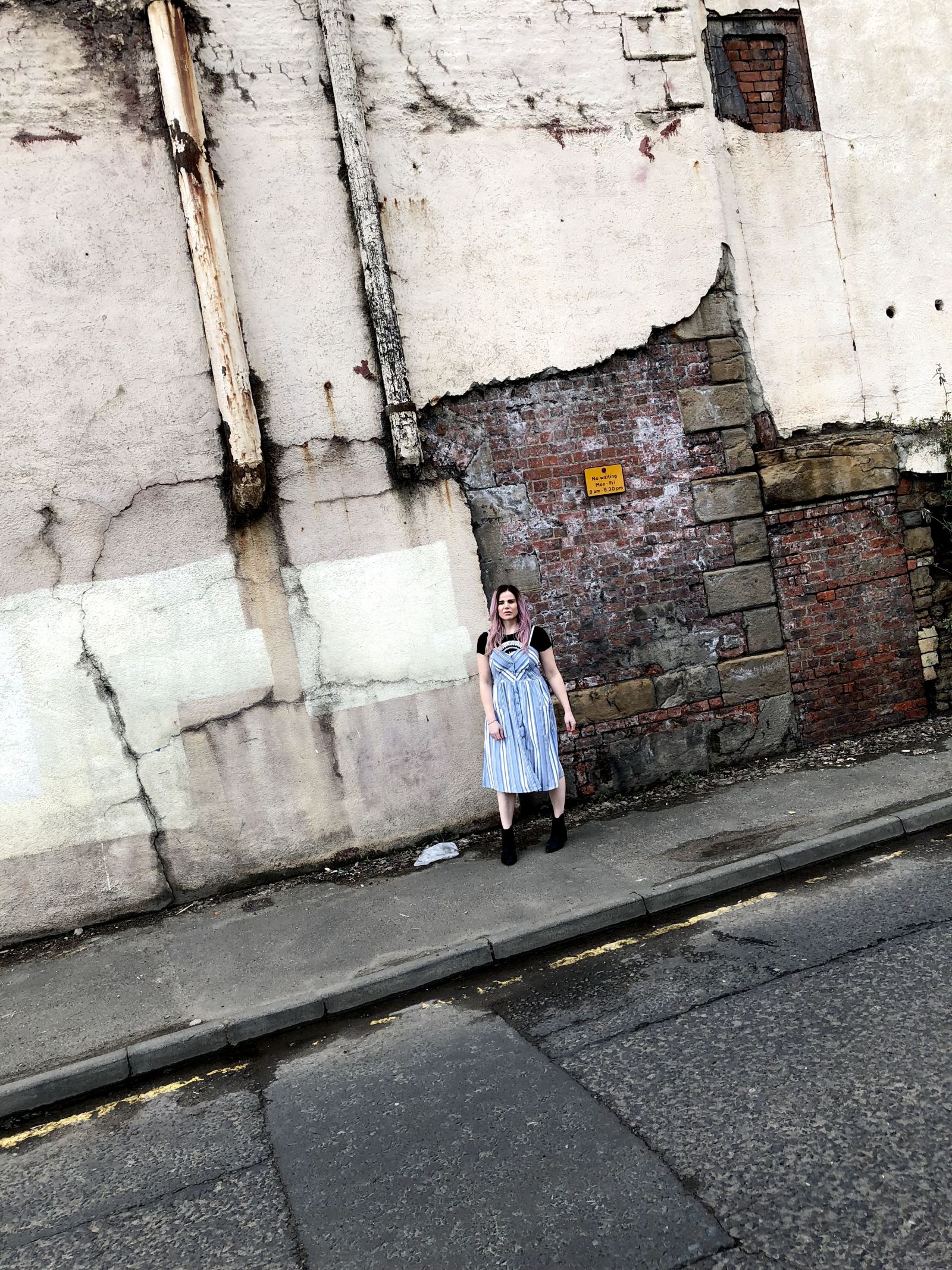 Ok, so now that’s out of the way, this button through, shoestring-strap sundress is my favourite of all the ones I’ve tried, that includes the more expensive versions at Marks and Spencer, Warehouse and Urban Outfitters. It has huge pockets at the perfect height to be functional, (so many items from Primark have the pockets way too high, like maybe their fit models are 5’5″) and the straps are adjustable, like bra straps. If you’ve read my Surgical Series, or if you know me IRL you’ll know that I absolutely hate exposing any chest. Décolletage, collar bones, however pretty you want to make it sound, it’s not on my list of body parts to show off. You can opt to wear this dress as it is, or if like me you like to cover that area, you can throw on a tighter fitting tee first.