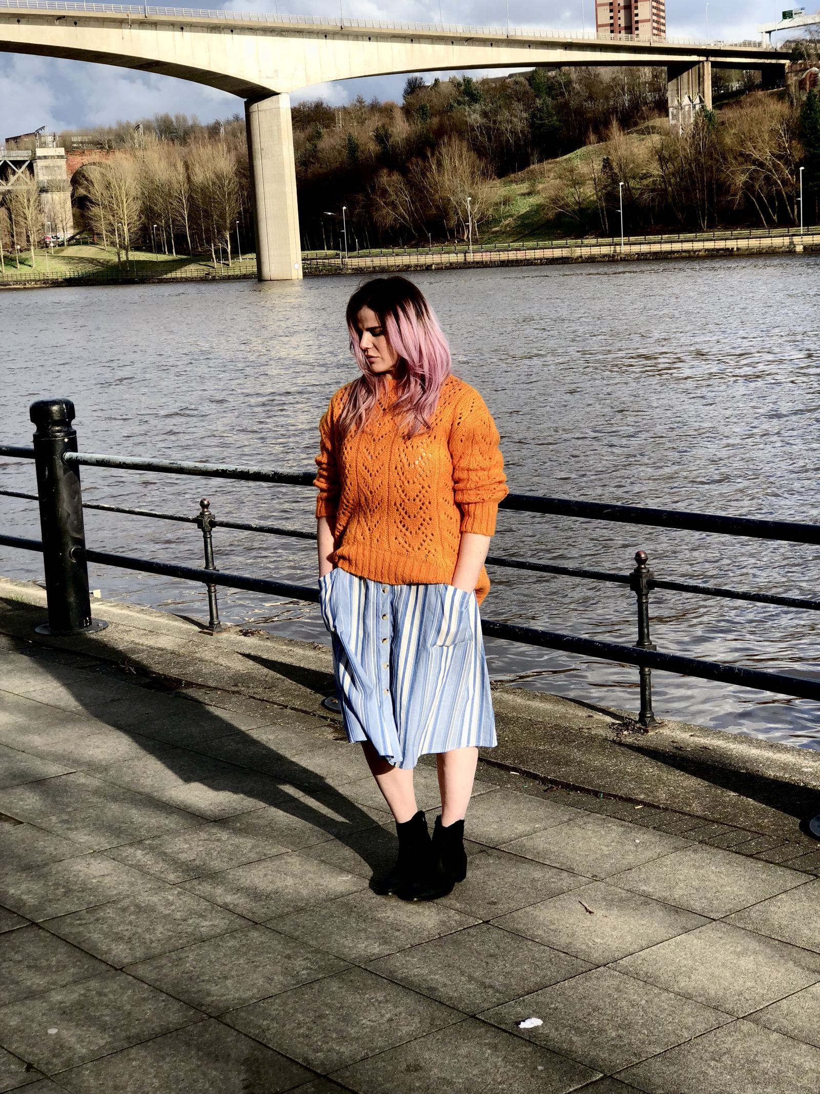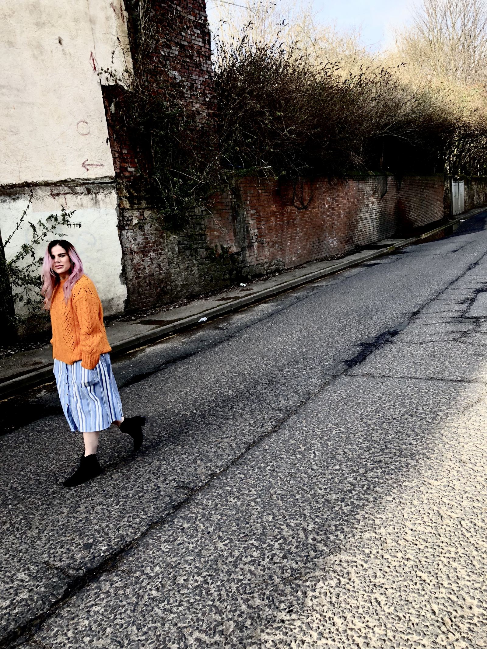 When it comes to prepping for Spring, layering is your top skill. Scratch people skills, social media and IT, layering is literally the skill at the top of your arsenal and the one that’s gonna score you the most style points. Get it right and you’ve got yourself two totally different looks, one on top of each other and the bolder you go, the better it is. My favourite top layer in this juicy combo is this orange knit sweater from Topshop which you can buy here. thrown straight over the top. The orange against the simple blue and white stripe might be too much for some, but for me it’s perfection.