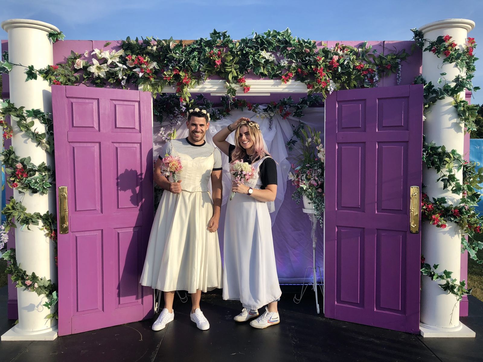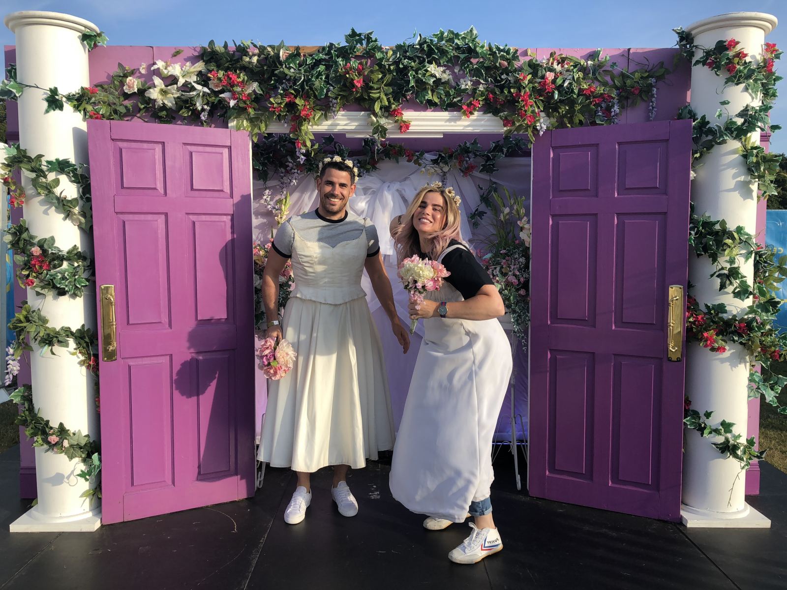 We arrived at Friends Fest on one of the hottest evenings of the year which was perfect as some of the photo opps are outdoors and look way better against a cloudless blue sky, it’s staged in a field in a series of marquees and offers the chance to recreate some of the most iconic scenes from the TV show, and the chance to pose for pictures wearing clothes from some of the most memorable scenes, including THOSE wedding dresses.