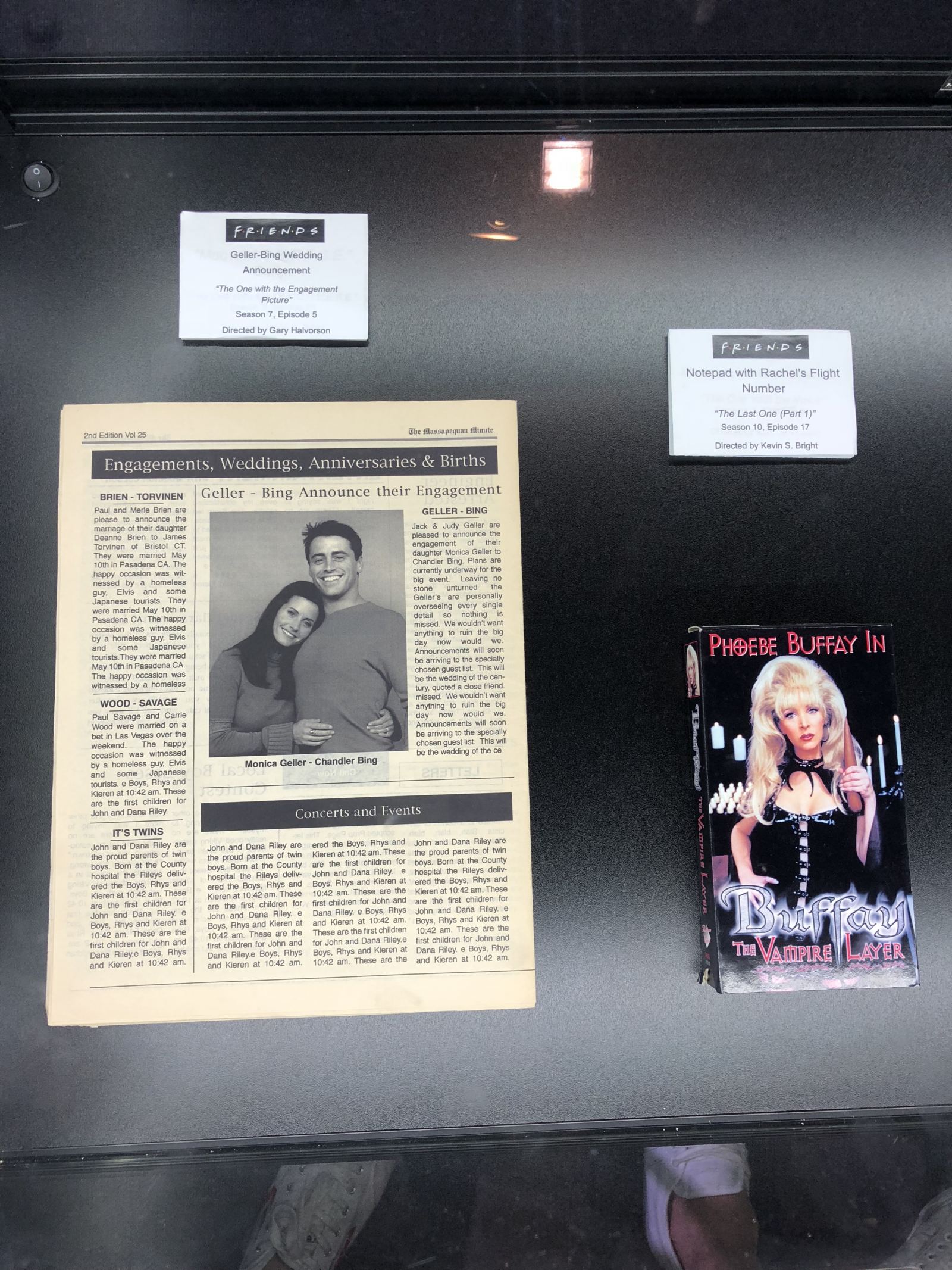 As part of Friends Fest there are set tours facilitated by your very own tour guide, as you wait for the tour to begin, you get the chance to view some of the actual, original props and set pieces from the TV show. They’re tucked away inside glass boxes and have designated handlers because yes Voyeurs, they’re worth THAT much. A box of soap powder from the set is valued at $4k and Phoebe’s guitar is valued at $19k but standing proudly in the corner is Gladys, the “artwork” made by Phoebe and it’s valued at a cool $16k.