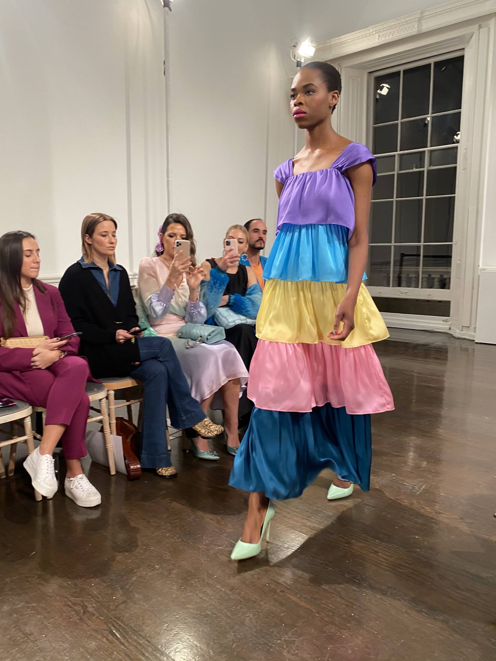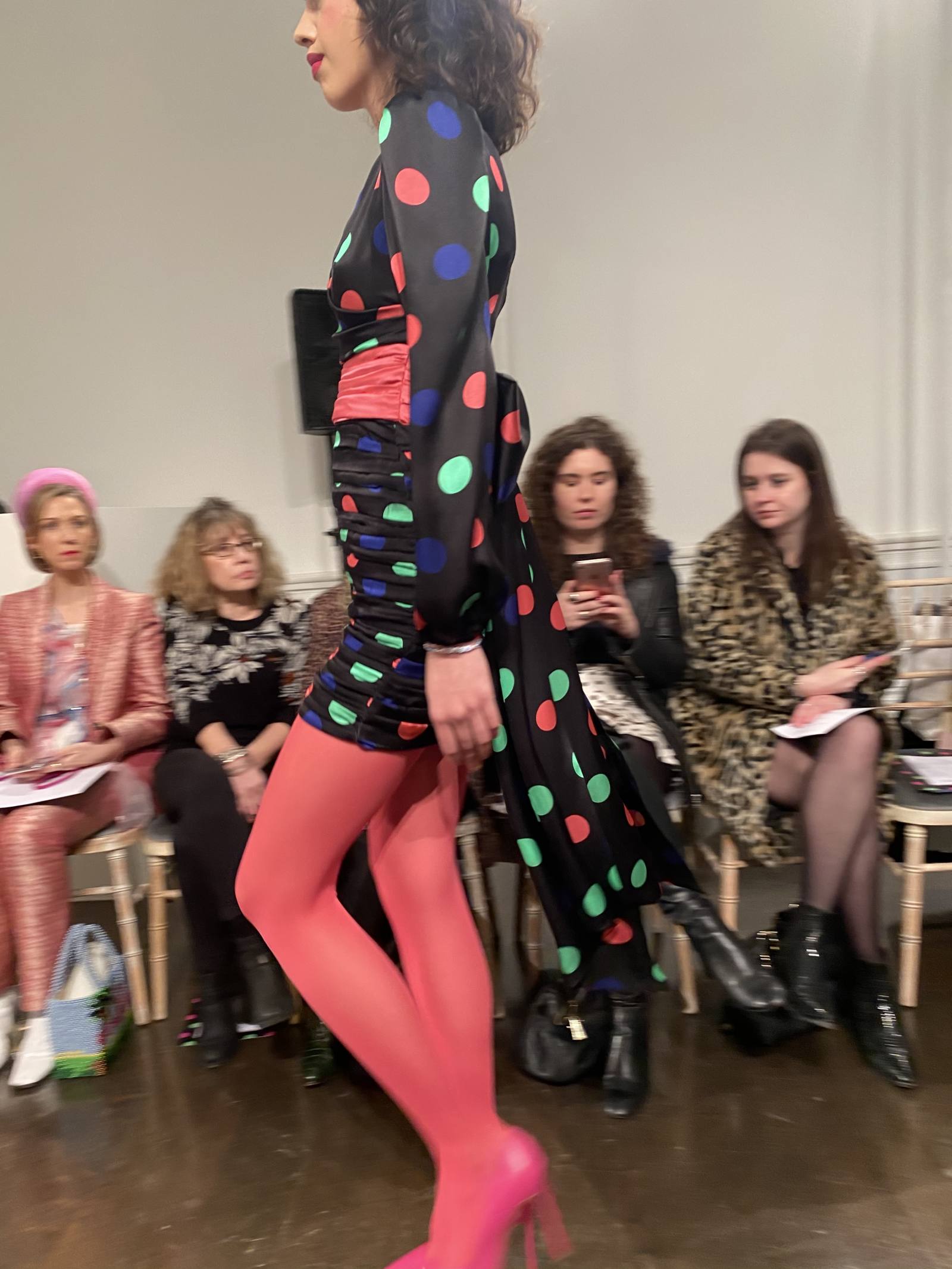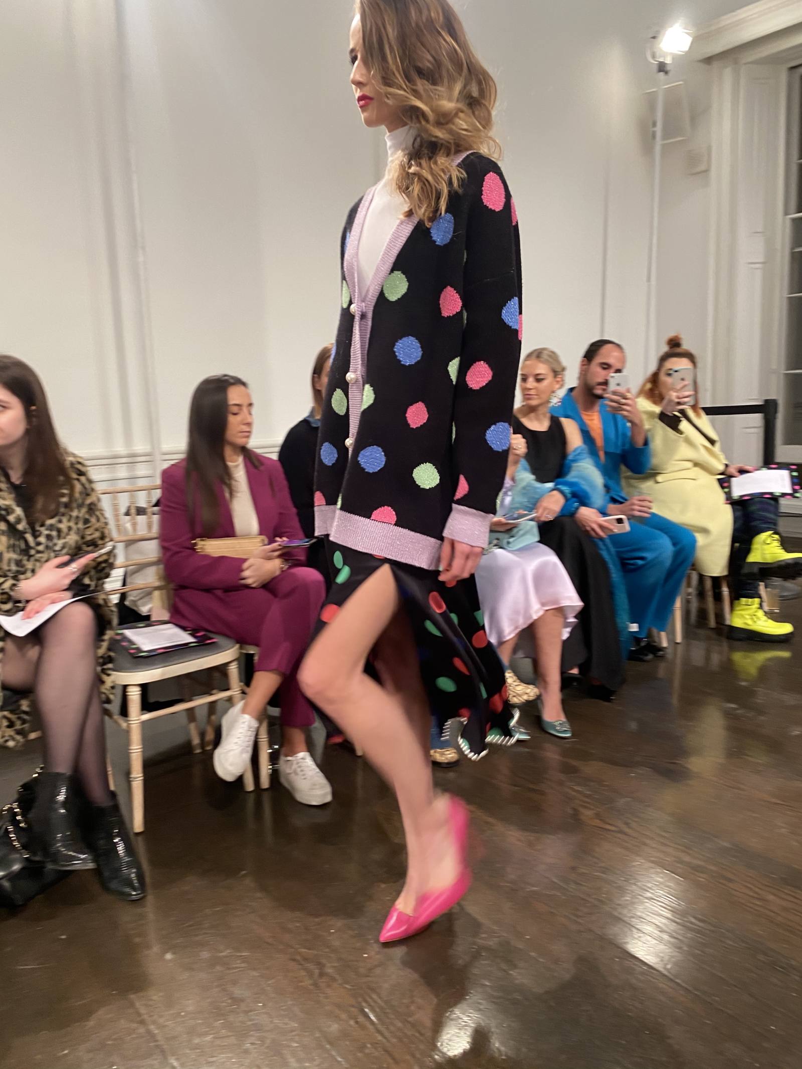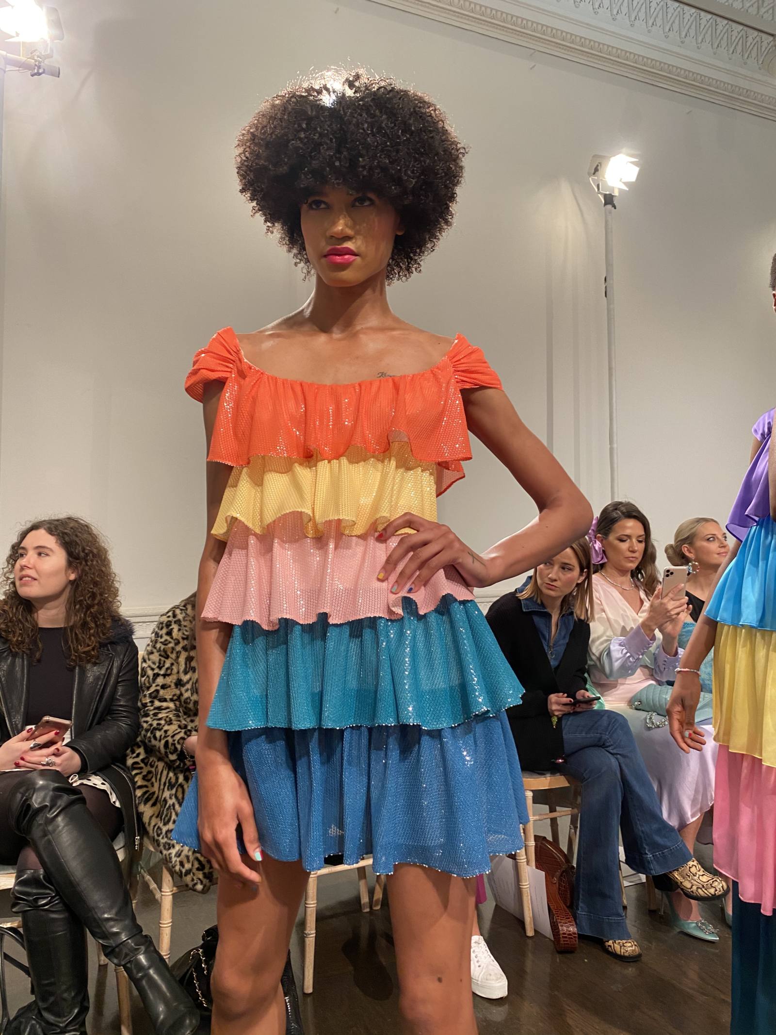 On a cold wet February day in London the fashion elite gathered for Olivia Rubin’s rainbow coloured presentation and for twenty minutes we completely forgot about the weather and focussed completely on animal print hearts, polka dots and the swishing of silky tiers as they sashayed past us up the makeshift runway.