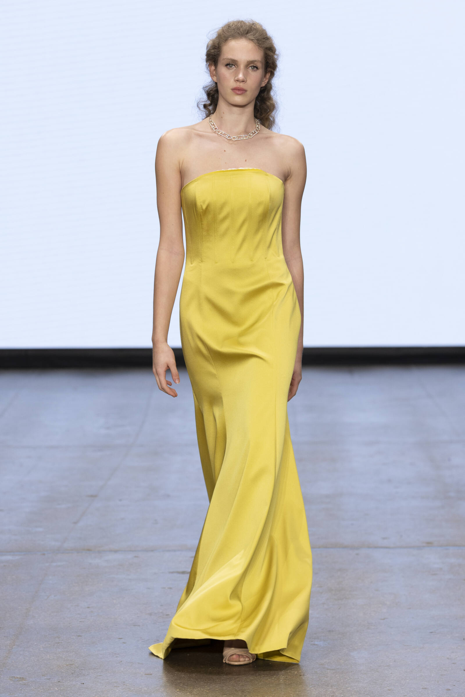 The collection is a continuation of Barrus’ signature philosophy: merging heritage with modernity. Strong architectural shapes meet weightless fabrics, creating movement that mimics the passage of time. Metallic embroidery, intricate beading, and layered textures echo the grandeur of Ephesus’ ruins bathed in the golden hues of sunrise and sunset. SEE Structured column gowns, corseted waistlines, asymmetrical one-shoulder drapes, and goddess-like silhouettes bring the drama. Textured marble-effect prints and architectural pleating pay homage to ancient craftsmanship, while fluid chiffon and layered tulle add an ethereal softness. The color palette—soft greens, golden yellows, twilight lilacs, and ivory—mirrors the natural beauty of Ephesus at dawn and dusk.