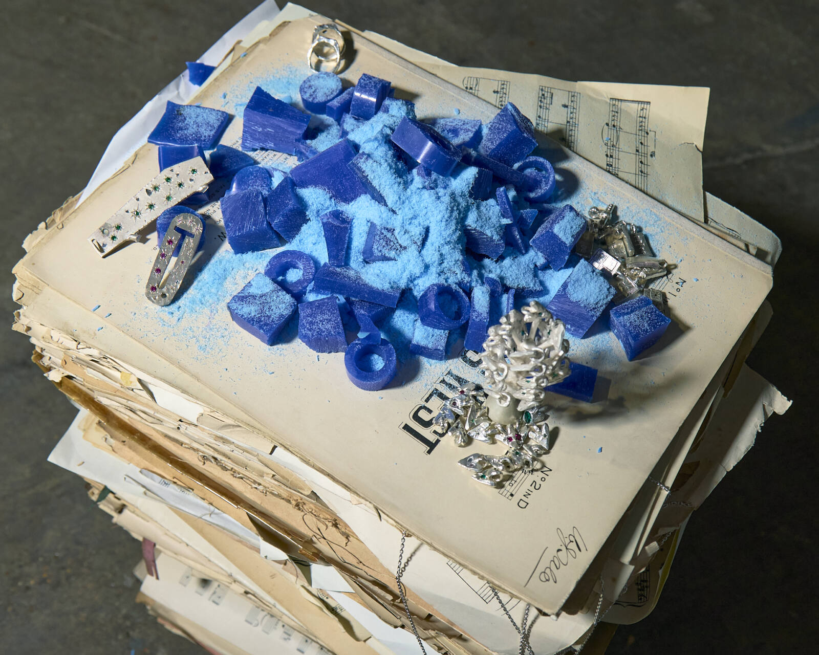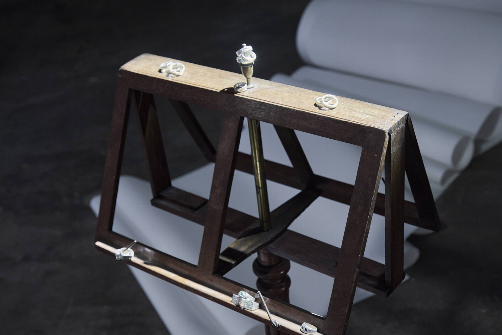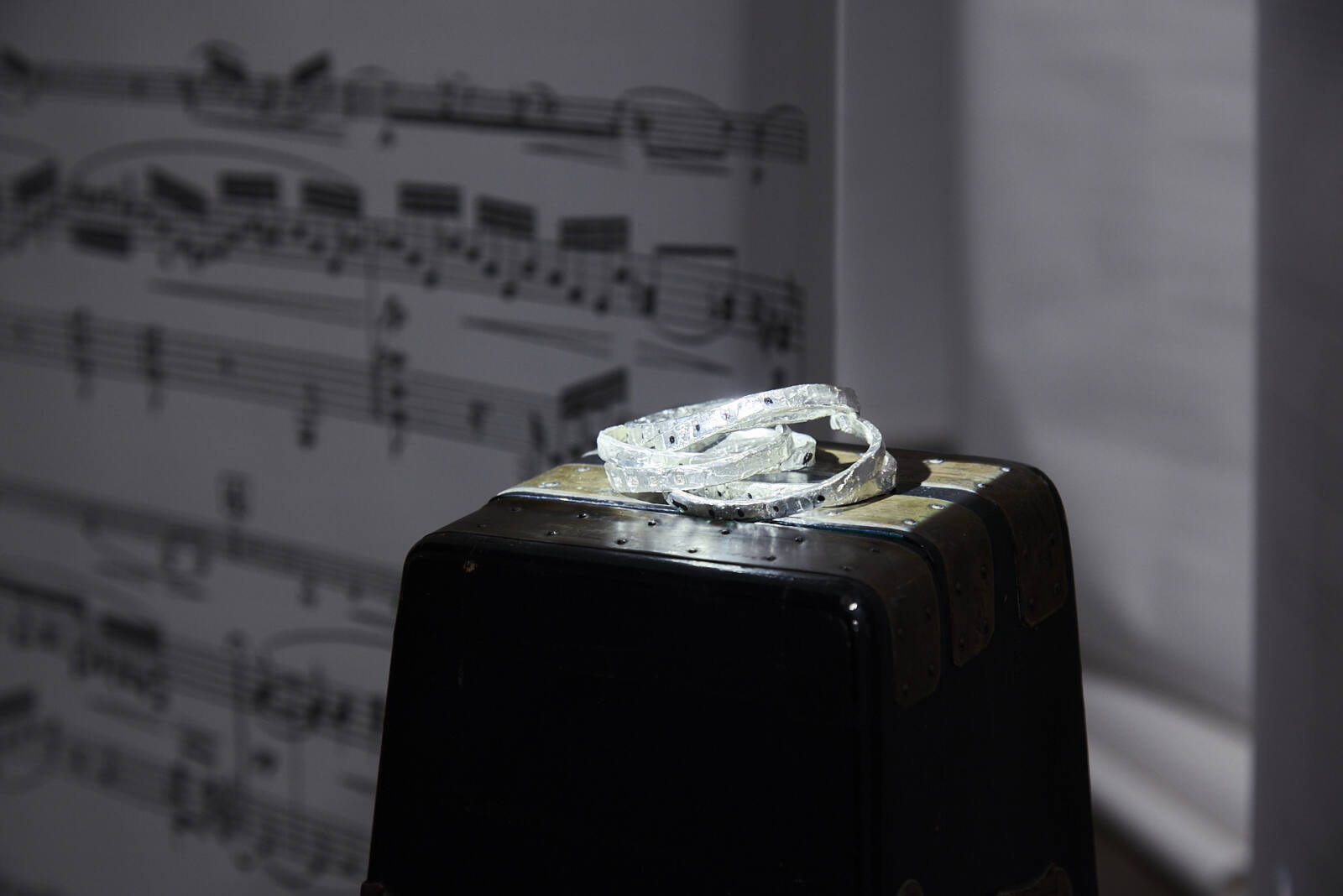 To extend this idea beyond jewellery, The Process Is the Point draws a parallel with music, another art form shaped by repetition, rehearsal and mistake. Throughout the presentation, London based cellist Ramilda gave a haunting performance in the BGC showspace which was decked with sheet music as part of the installation, with the music unfolding as an ongoing process rather than a polished recital.