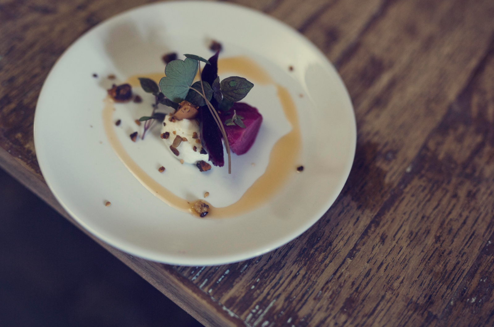 First up, North Country Beetroot. Now I gotta be honest here Voyeurs, I really hate beetroot and not just a little bit. I mean I find it gross and every time I’ve eaten it it’s tasted like freshly ploughed mud. Bleurgh. I knew in this situation I’d have to eat it and pretend to like it but actually found myself really enjoying it, it had a fresh earthy taste and paired with the goats curd it was actually pretty damn delicious. Surprised? Yeah, me too.