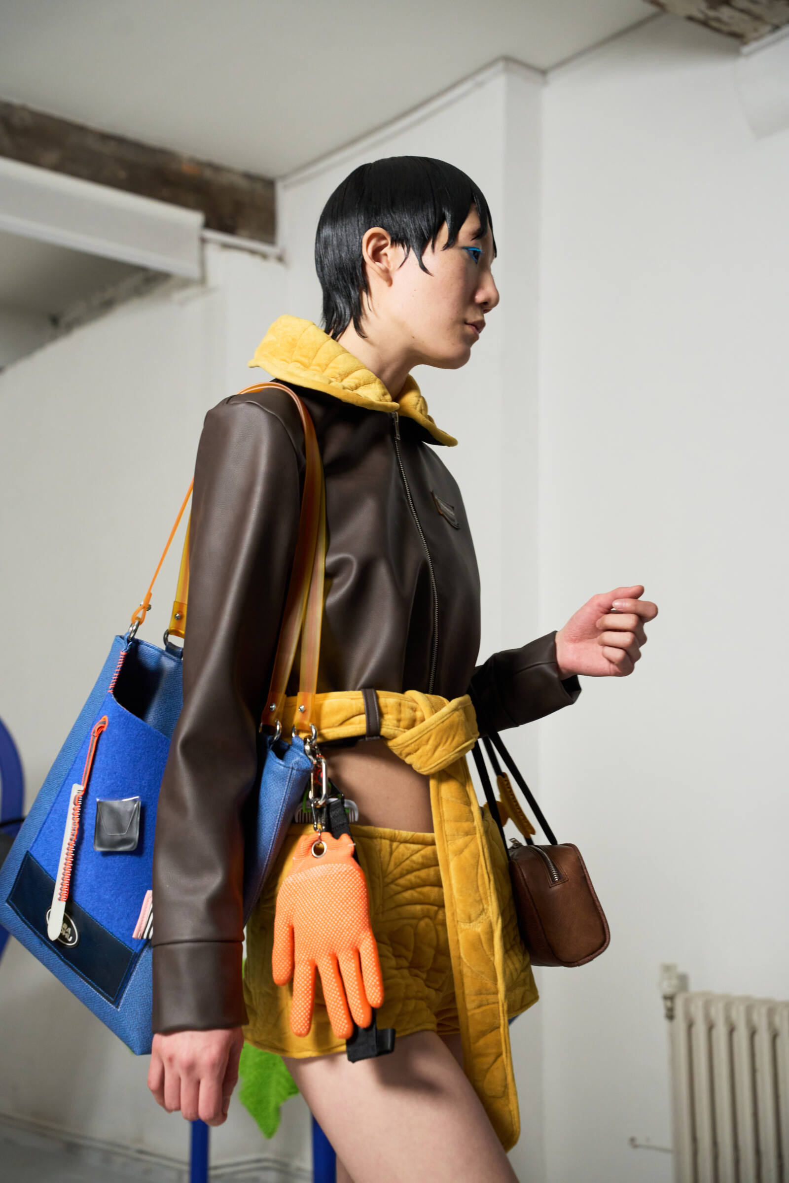 Cheap, functional, easy to ignore; but it binds, holds, connects. Mass-produced but never identical — different tension, thickness, colour. Some snap quickly, some last for years. When you find a “good” one, you know it straight away. Strong, reliable, just right. There’s satisfaction in that small difference, that discovery amidst the ordinary. Designed to be temporary, yet often enduring, elastic stretches, adapts and keeps working. Over time it carries the marks of use. Rubber, elasticity and flexibility shape this season. Pieces loop, flex and fasten. Components can be added, removed or swapped. Upholstery offcuts, oven mitts, jar seal rings, bathrobes and carpet samples are brought into the mix. Accessories shift over time, changed through use. Elastic.