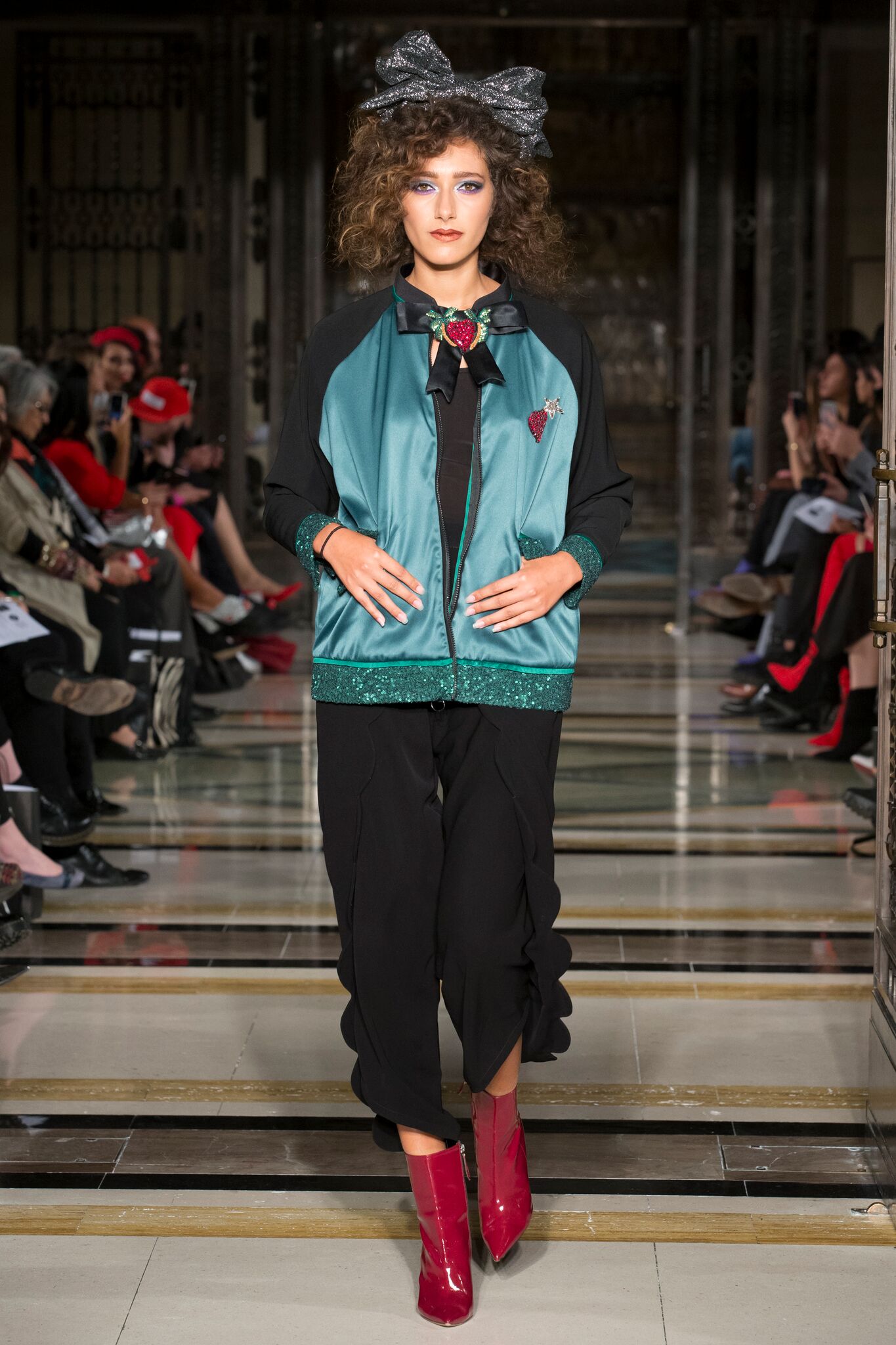 The collection is littered with ribbons, bows and frills giving a three dimensional feel to each piece and the addition of headwear pieces designed in collaboration with headwear designer Katie Hamlett of Sassy Freak, sees the accessories really form a part of the whole ensemble. FW18 sees the addition of printed scarves, motif tights and embellished handbags elevate the clothing beyond that of a collection, to the creation of an imaginary world reminiscent of a dreamscape.