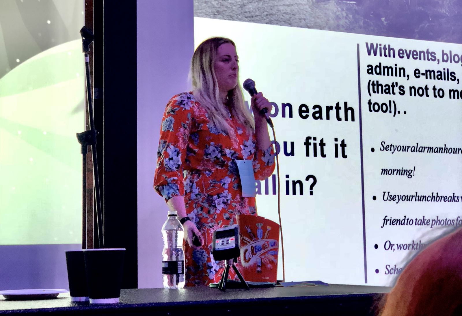 Three awesome speakers that’s what! First up was Kirsty Leanne who gave an impassioned talk on how to write the perfect pitch to brands with sound advice on how to lay out that all important first contact. Her talk included tips such as letting the brand you’re pitching to know just why it is that you love them and including what made you want to work with them, but also making sure that you never over promise on what you can deliver when you make your pitch. Looking around the room there was a 50/50 split on those frantically jotting down notes in notepads covered with inspiring quotes, and those taking screenshots of the words of wisdom displayed on screen.